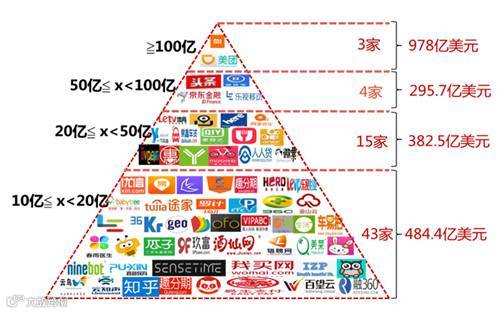 131家中国独角兽企业的总估值达4876亿美元,平均估值37.2亿美元,其中,涌现出了7家估值超过(并包括)100亿美元的超级独角兽,估值占比46%, 仅中关村就占了3家,分别为小米(460亿美元)、滴滴出行(338亿美元)、美团点评(180亿美元)。