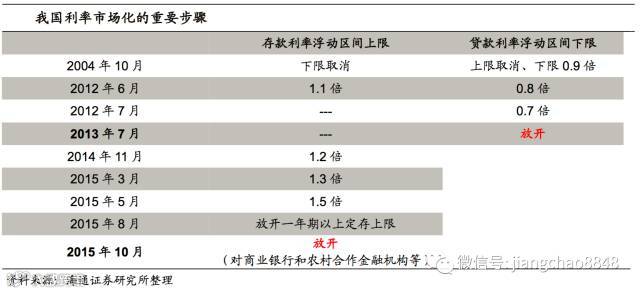 我国利率市场化基本完成。13年以来,我国利率市场化进程逐步推进。首先,同业存单和大额存单先后开启发行,存单交易市场逐步完善;其次,13年7月贷款利率取消下限;再者,15年央行连续降准降息的同时,存款利率上限从基准1.2倍、1.3倍、1.5倍到全部放开,意味着利率市场化基本完成。
