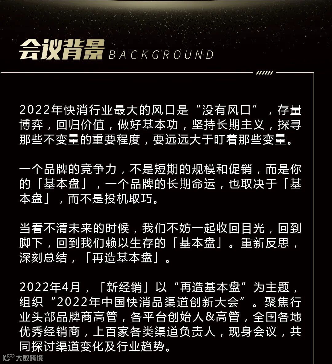 PS:2022年4月,由「新经销」举办的2022年(第七届)中国快消品渠道创新大会将在成都盛大开启。围绕着“夯实基本盘,做强基本盘,再造基本盘”,106位快消大咖重磅嘉宾,共赴2022上半年快消行业最大盛会!