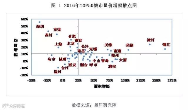 五、 2016年TOP50城市的量价增幅散点图