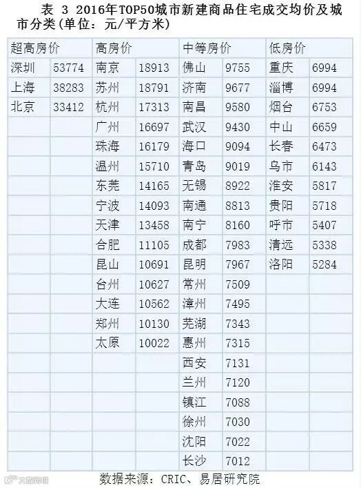 三、 2016年TOP50城市的成交均价排行