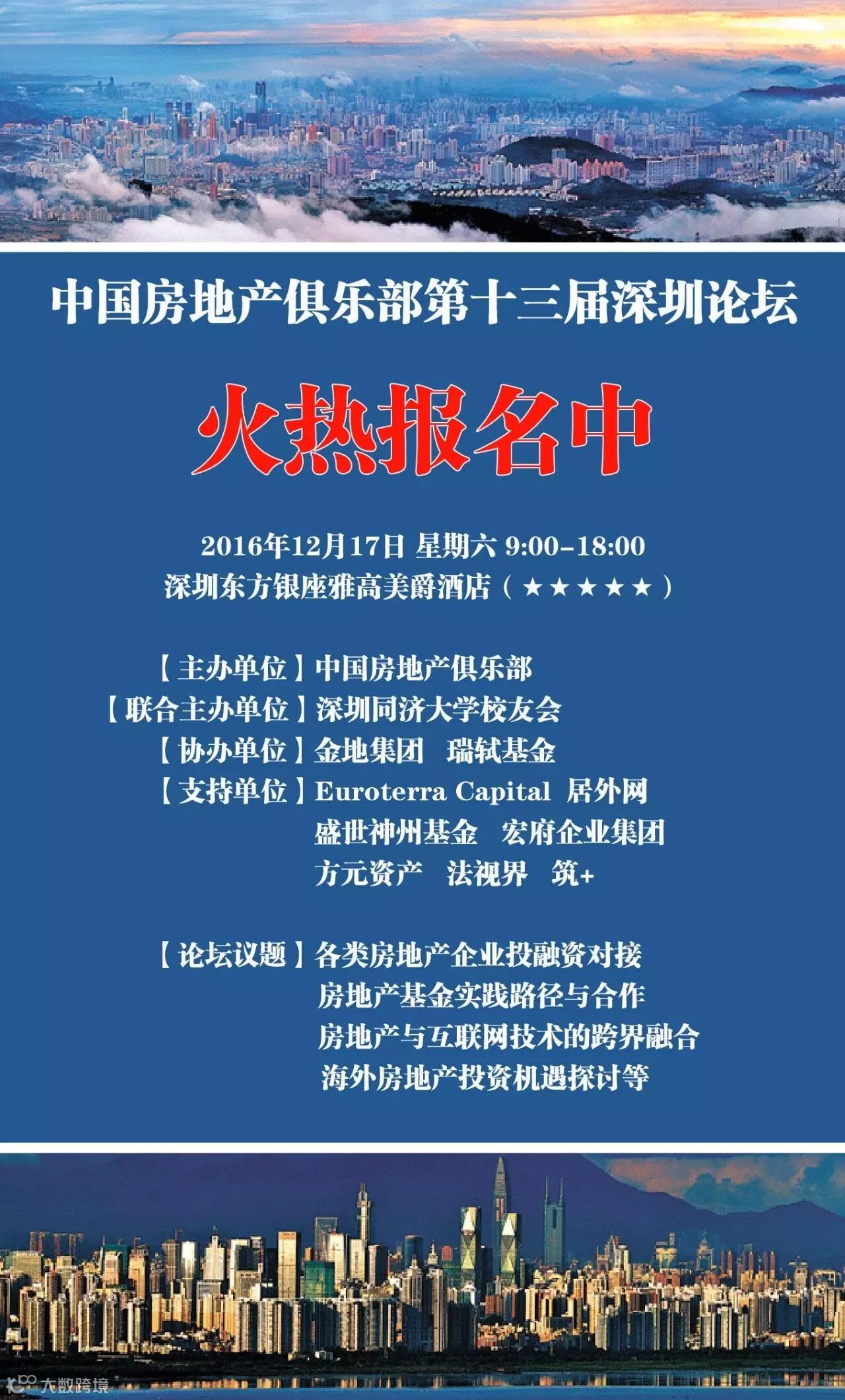 启发企业战略定位、挖掘商机和产生合作机会,这场适合总裁、董事长、CEO及企业创始人参加的高端房地产论坛召开即将于2016年12月17日(星期六)在深圳东方银座雅高美爵酒店举办。
