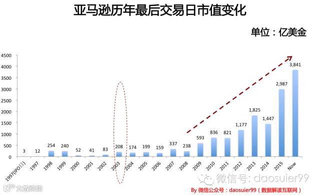在之前的一篇文章《13岁的京东和13岁的亚马逊》中,我提到亚马逊自2008年开始走出了波澜壮阔的牛市行情,市值直接从238亿飙升到了最近的3539亿美金。其间我也提到了一些原因,但还不够详尽,所以有兴趣写下这篇文章。