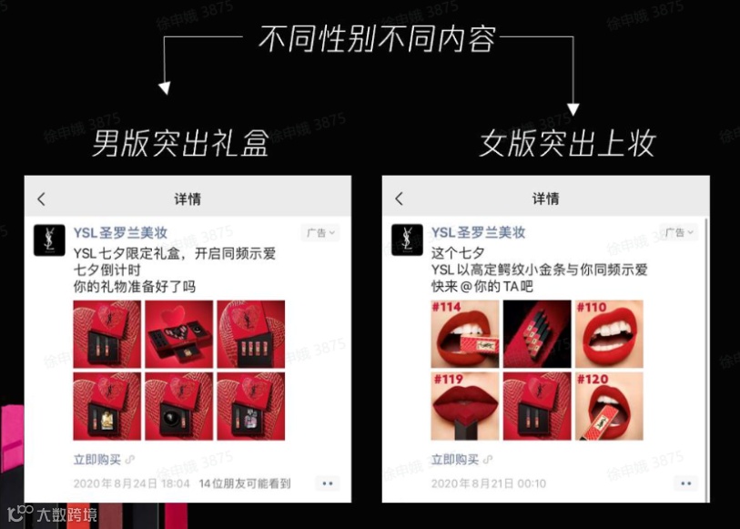 针对女性:朋友圈投放素材以突出女性上妆后的“魅惑”效果; -