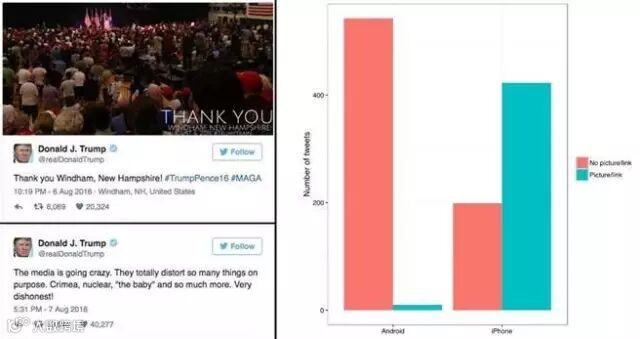 基于上述分析,几乎可以确定来自Android手机的推文是由川普本人所发;而来自iPhone的推文,则应该是出于他助理团队之手。