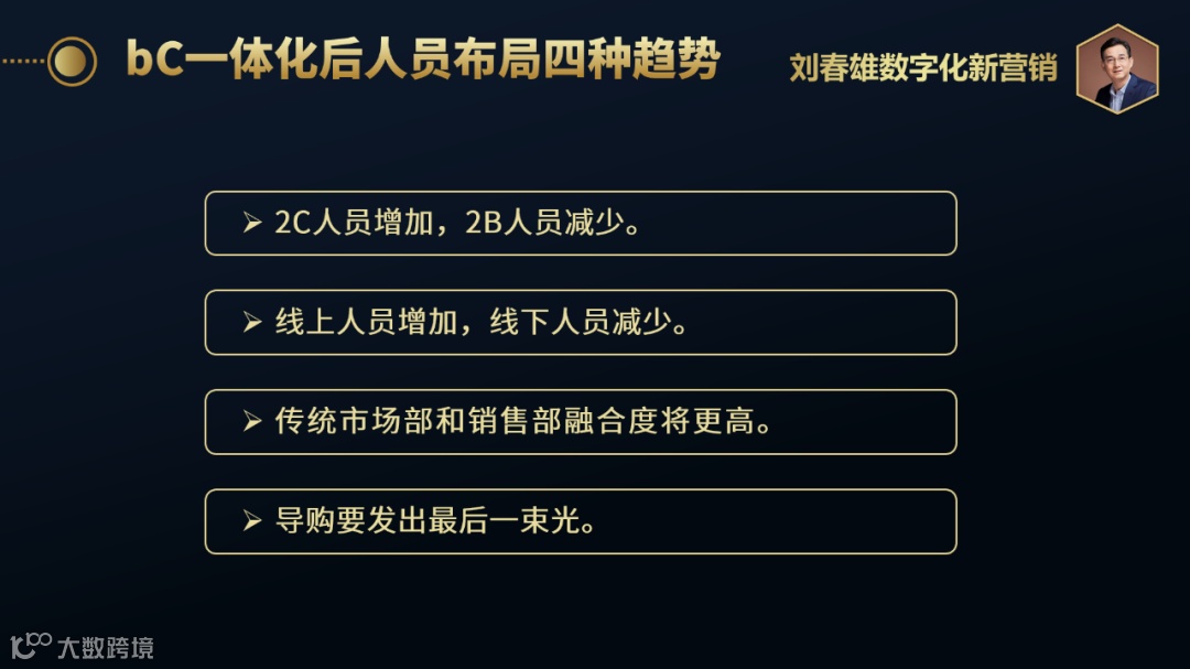 bC一体化后,渠道形成了拉力,人员布局有四种趋势: