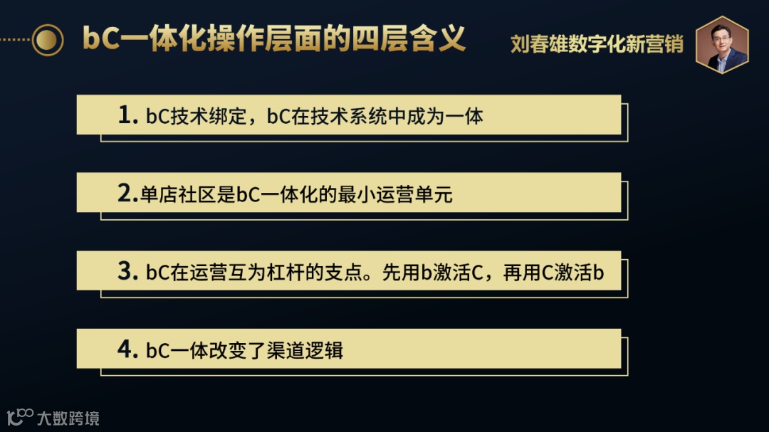 渠道数字化体系之下,bC一体化在操作层面体现在四个方面: