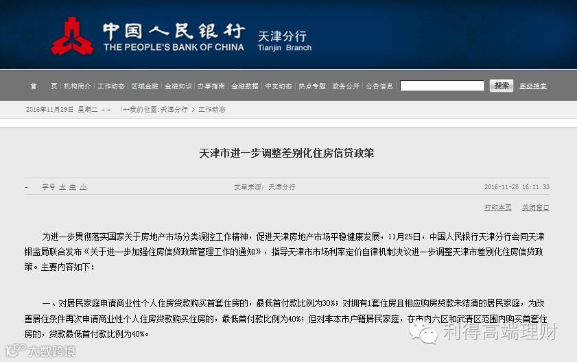 同时,天津也开启房贷的控制。中国人民银行天津分行在官方网站正式发布《天津市进一步调整差别化住房信贷政策》,指出将执行差别化信贷政策,首套房商贷最低首付比例上调至30%。