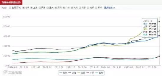 而北京、上海的一手房都是四字头——4万元/平方米左右,远超广州。