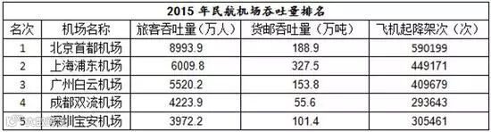 广州白云机场在2015年末拥有航线286条,国际航线达133条。2015年实现旅客吞吐量5520.2万人次,货运吞吐量153.8万吨,均位居国内第三。