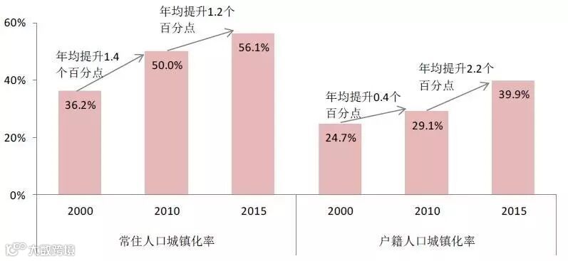 图:常住人口城镇化率与户籍人口城镇化率增长情况