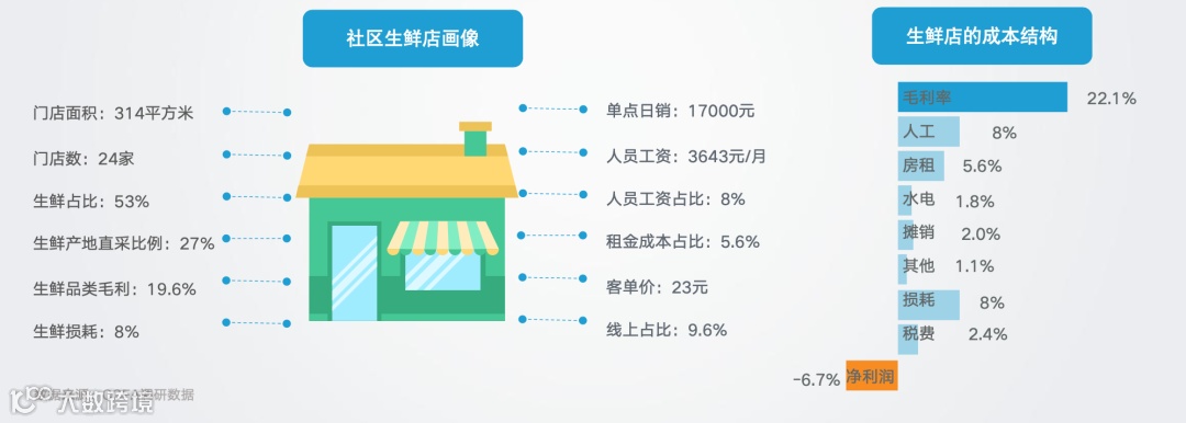 以社区生鲜店为例,CCFA的调研数据显示,传统的社区生鲜店毛利率虽然高达22.1%,但是综合各种成本之后,