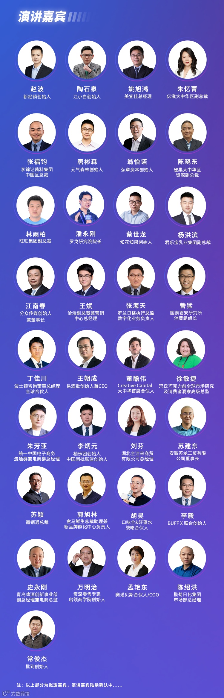 截止目前已确认的部分重磅嘉宾有: