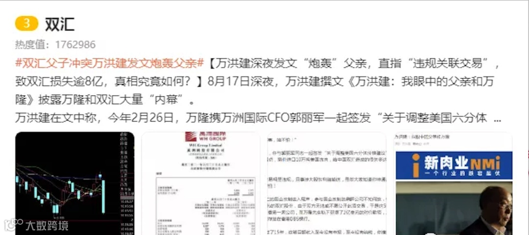 在8月17日晚,在双汇新一轮人事调整公布后,万洪建突然发声,其发布署名文章,称自己与万隆此番矛盾的导火索在于CEO的人选,并炮轰万隆化公为私、任人唯亲、偷税漏税等多项罪状,从公司治理到家庭关系甚至个人私德,“父子大战”事件进一步扩大化。
