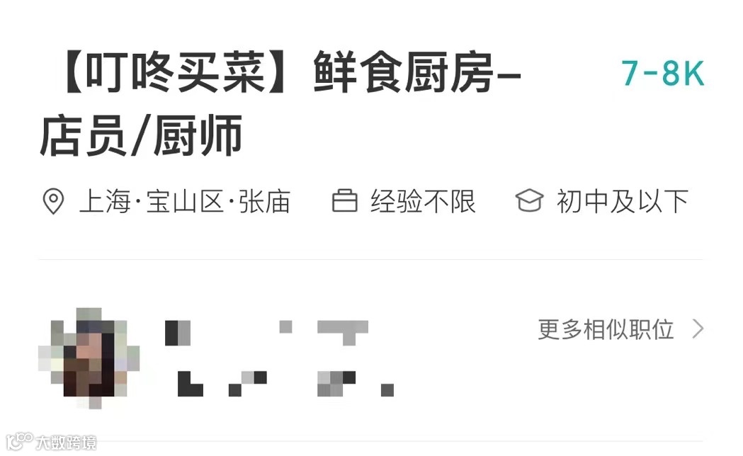 一则叮咚买菜发布在Boss直聘上的招聘信息显示,叮咚买菜正在上海招聘鲜食厨房店员和厨师,工作内容包括完成各类原料和耗材的来货验收,按照标准流程完成食品的加工工作等。