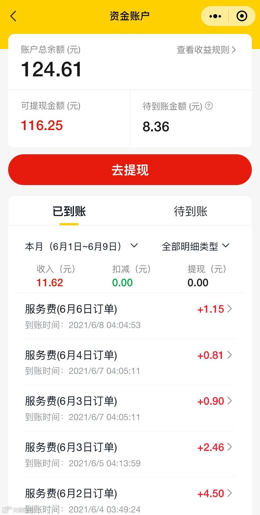 说完,他展示了美团服务费收入的情况,6月1-9日,9天累计收入仅只有11.62元,半年累计收入仅为124.61元。
