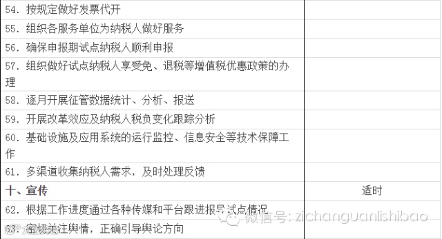 各级税务机关将营改增工作均纳入督办及绩效考评范围,对改革任务执行不力,工作落实不到位,相互推诿致使改革时间节点出现延误的单位和个人,必须依规严格问责,严肃处理。