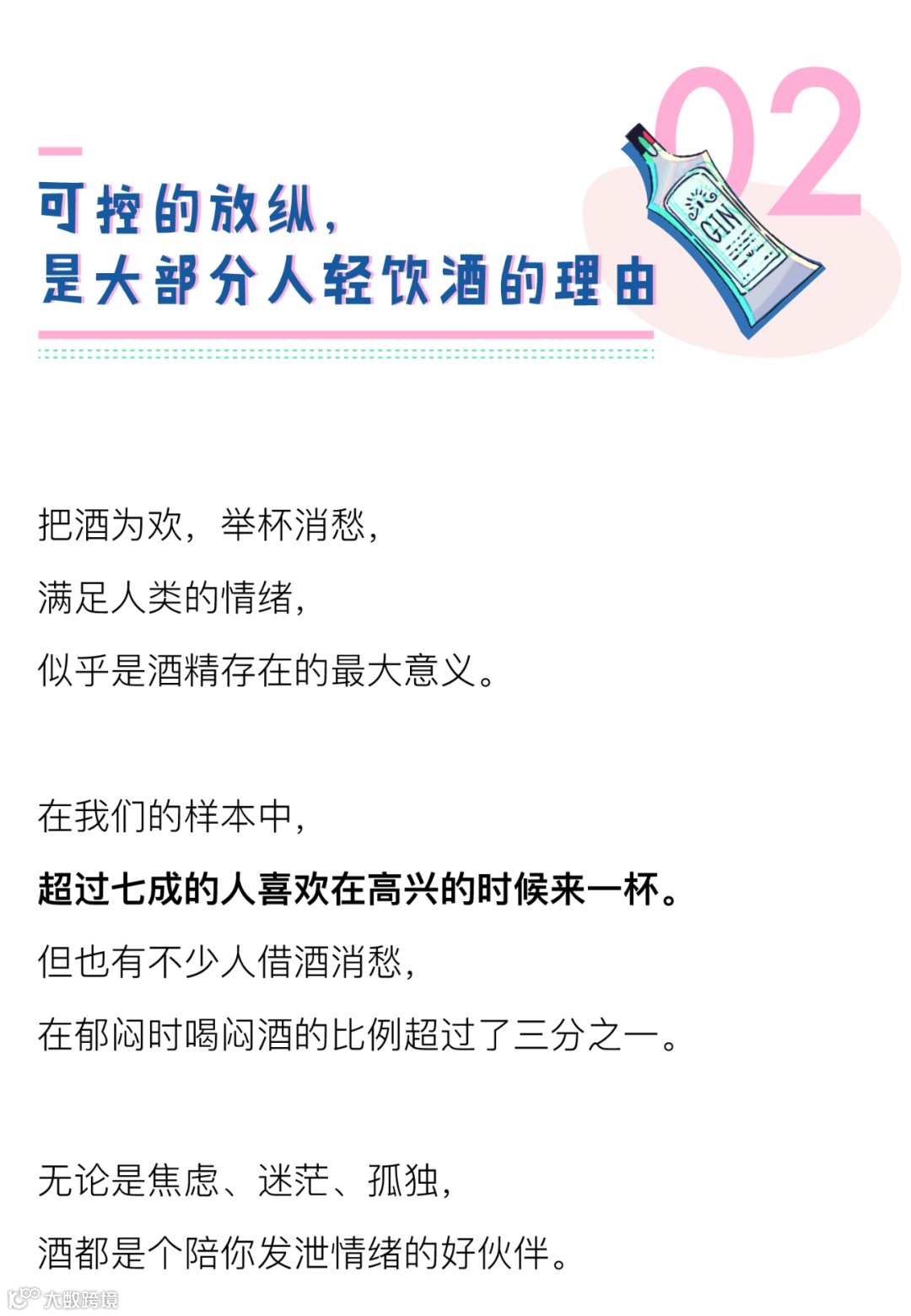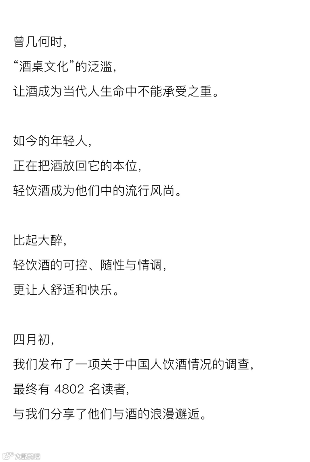 他们明白,负重前行的日子,依旧将在酒后的第二天到来,年轻人的放纵,必须带有理智,也必须在可控的范围内。在这个意义下,轻饮酒,已经成为许多人维持生活节奏不可替代的最优解。