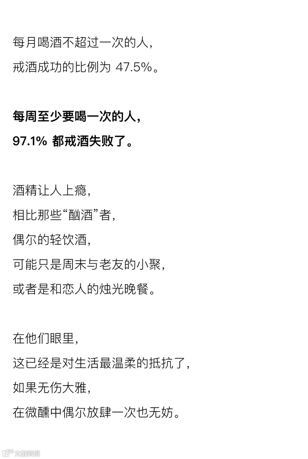 轻饮酒的奇妙就在于,喝到微醺即止的状态,这种似醉非醉的感觉让他们摆脱条条框框的束缚,享受自由的同时,又不让事情走向失控。