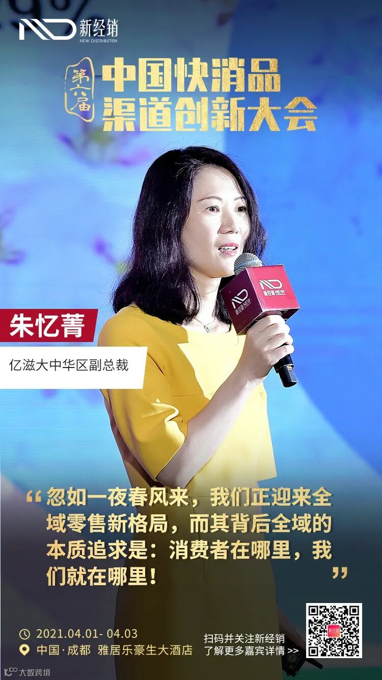 在刚刚过去的中国快消品渠道创新大会上,新经销有幸邀请到了亿滋大中华区副总裁朱忆菁女士做主题分享。
