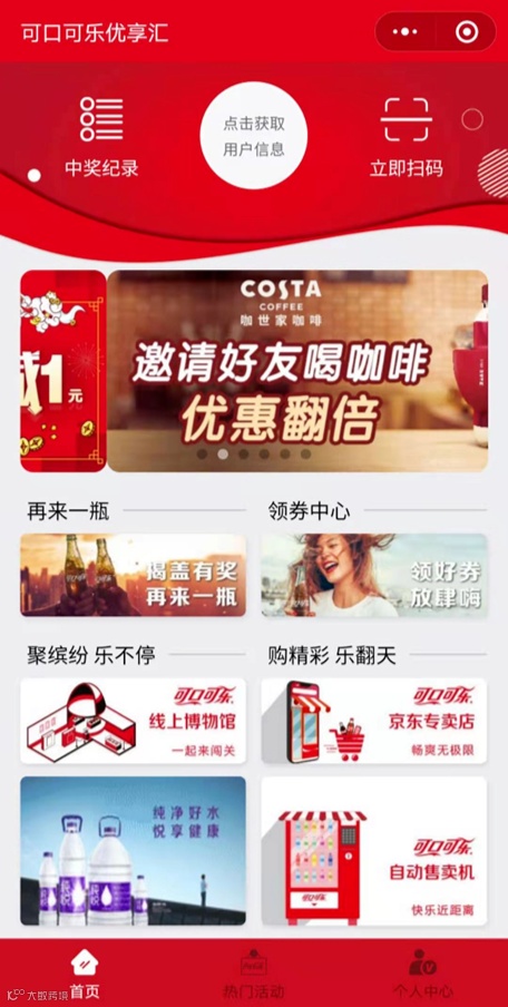 郑州太古可口可乐小程序“可口可乐优享汇”