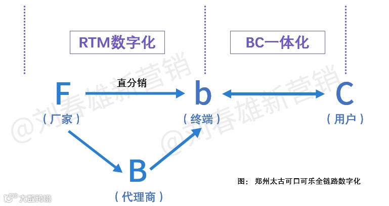 这是一套B2B深分系统。可口可乐也有电商(B2C),但与渠道无关。可口可乐的全链路数字化,彻底打通了厂家(F)和终端(b)、用户。因此,郑州太古可乐全链路数字化准确的路径应该是:F2b2C。