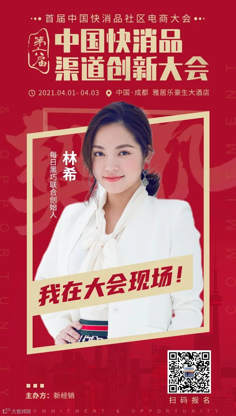 PS:每日黑巧联合创始人林希女士将作为演讲嘉宾,参加新经销4月1日-3日在四川成都举办的2021(第六届)中国快消品渠道创新大会,届时她将在会上分享更多关于做每日黑巧在渠道增长方面的实战干货内容,有兴趣的朋友不要错过本次大会。