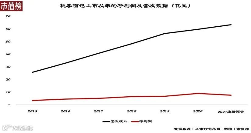 证券交易所上市,成为“面包第一股”。自上市以来,营收和利润几乎都保持着两位数的增长率。