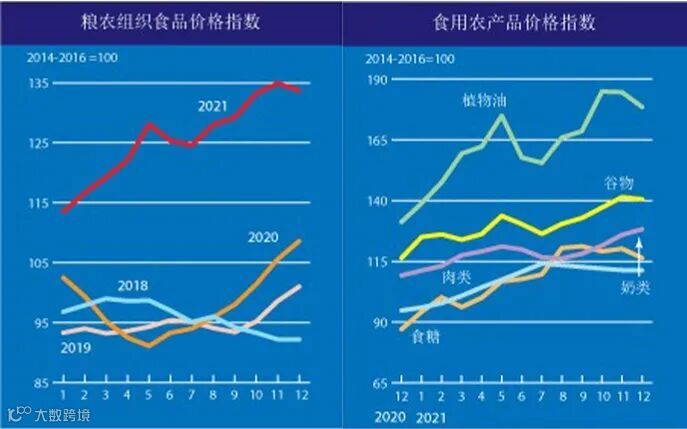 再从数据上看,根据联合国粮食及农业组织2022年1月6日发布的世界粮食形势,2021年食品价格指数达到十年来最高水平。其中,植物油和谷物指数均创历史新高。