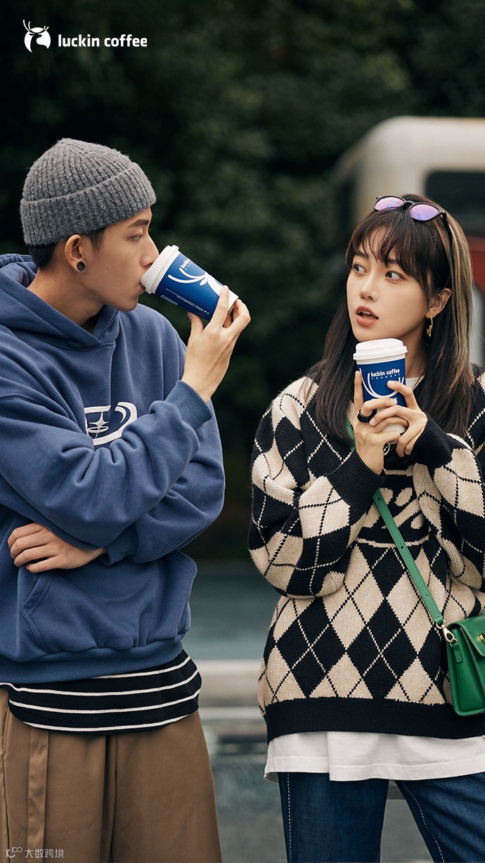 以官方微博公布的物料为例,星巴克的风格更偏传统商务风格,瑞幸的则普遍是更潮的年轻人。