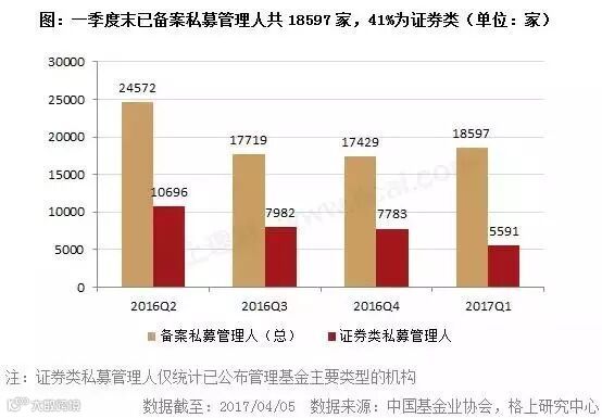 协会备案数据显示,截至2017年一季度末,整个私募行业从业人员达22.7万人,其中,证券类私募行业从业人员6.03万人。
