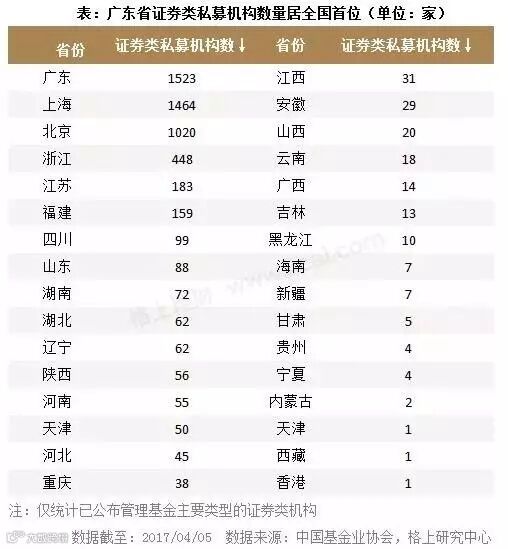 深广地区是私募重镇,所以广东省证券类私募机构数量是最多的,超过1500家,上海和北京次之。