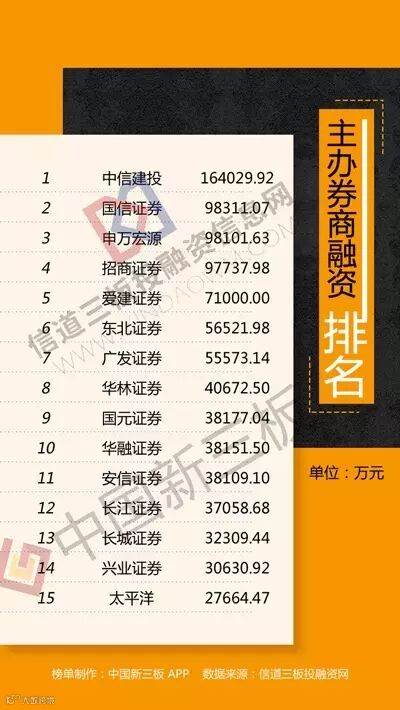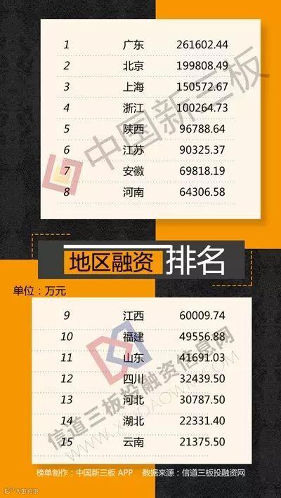 编者按:中国新三板APP、中国网新三板(finance.china.com.cn)联合信道三板投融资信息网(www.xindaowm.com)发布“新三板融资排行榜”,通过对公司公告的收集梳理,按照公司、行业、地区、券商等指标,筛选出每个指标的前15名。通过上述排名,让业界更加了解新三板融资的最新动态,以扩大新三板影响力,从而促进新三板更好地服务中小企业和推动中国实体经济发展。