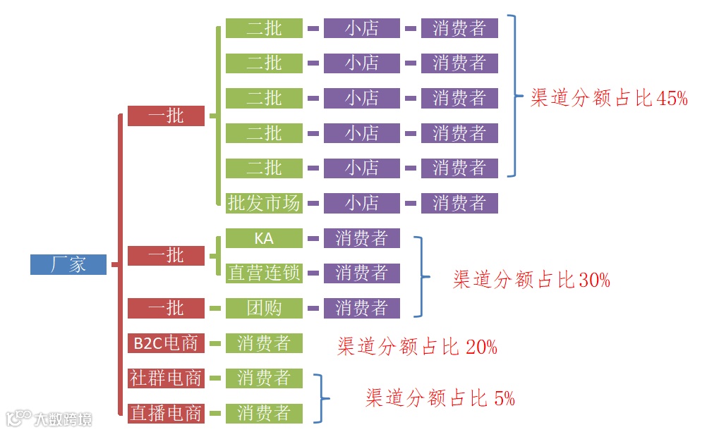 目前任何一家全国性的消费品牌,其一级经销商在300-1500个左右,二批商数量是一批商的6-10倍。任何新消费品牌都建立到二批商的分销层级的时候,全国性的分销才完成,才具备高增长率的可能(比如已经建成的江小白和正在建的元气森林)。