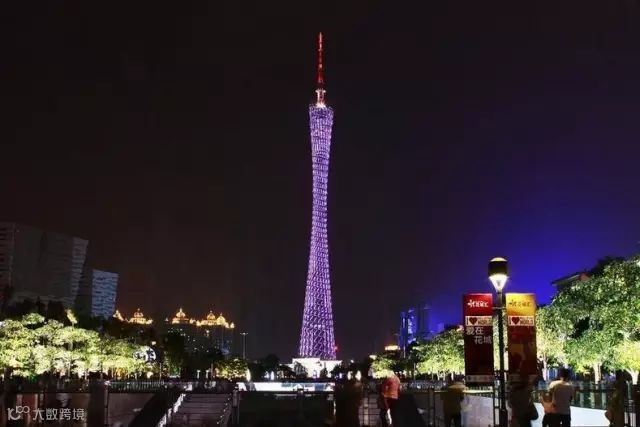 古老的城墙在黑夜中被红色的霓虹灯点亮