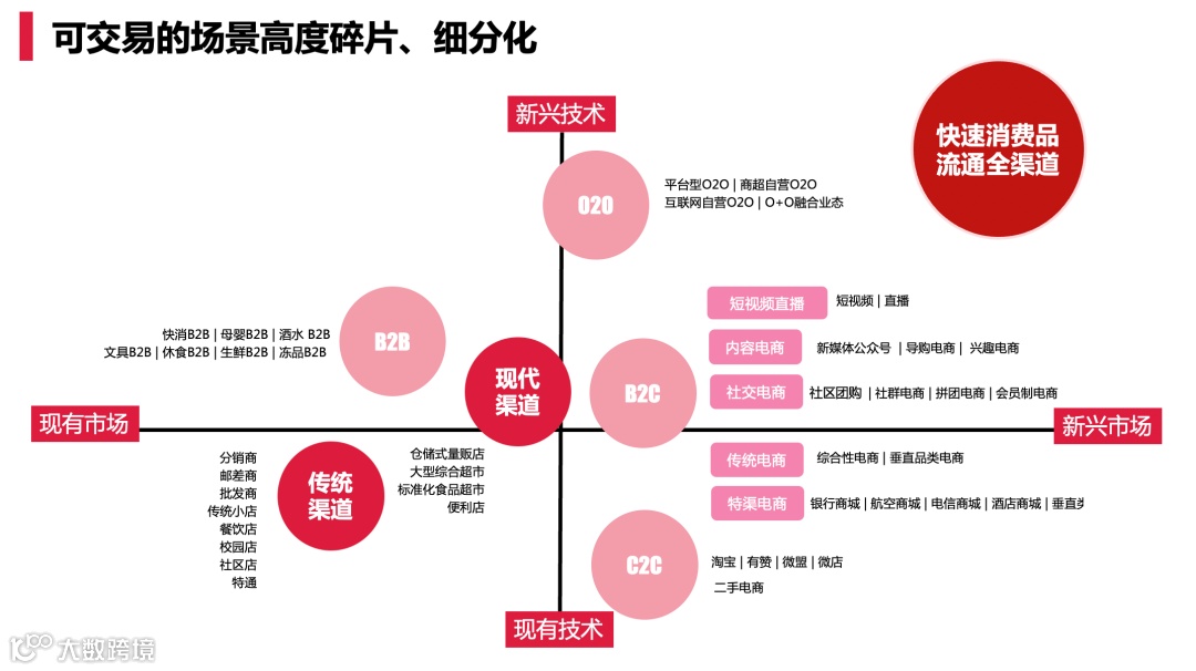 这个划分从今天来看,一方面是不同的场景,市场的重要性已经不同;另外一个角度,很多场景的融合趋势也已经非常明显。所以,我们今天要花一点时间,对当下的零售市场重新做一个归类和分析。