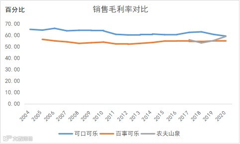 图1:可口可乐、百事可乐、农夫山泉毛利率对比