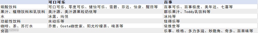 图5:可口可乐、百事旗下品牌对比(不完全统计)