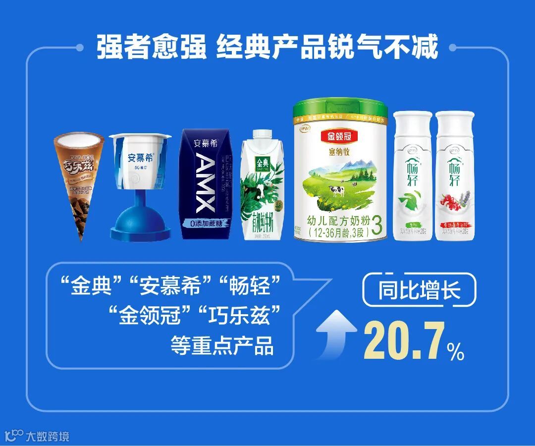 财报显示,伊利旗下经典产品继续保持着强劲增长态势。数据显示,“金典”“安慕希”“畅轻”“金领冠”“巧乐兹”等重点产品销售收入比上年同期增长20.7%,锐气不减。