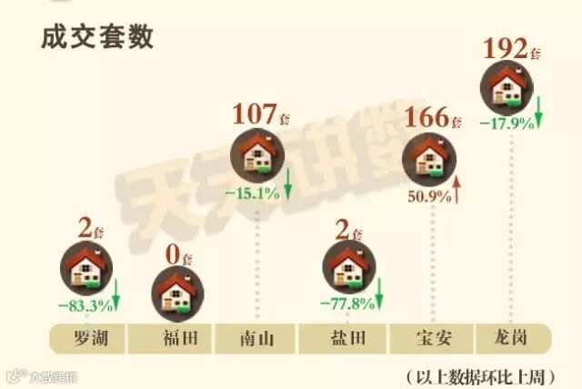 1、罗湖上周仅成交2套遭遇“滑铁卢”,环比下降83.3%,成为各区成交中下滑幅度最大的区域。