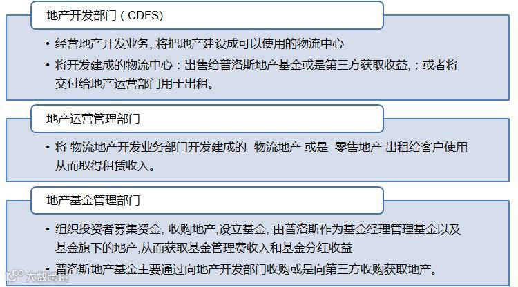 在普洛斯,地产基金管理部门、地产开发部门、地产运营管理部门同等重要,各司其职,具体如下图: