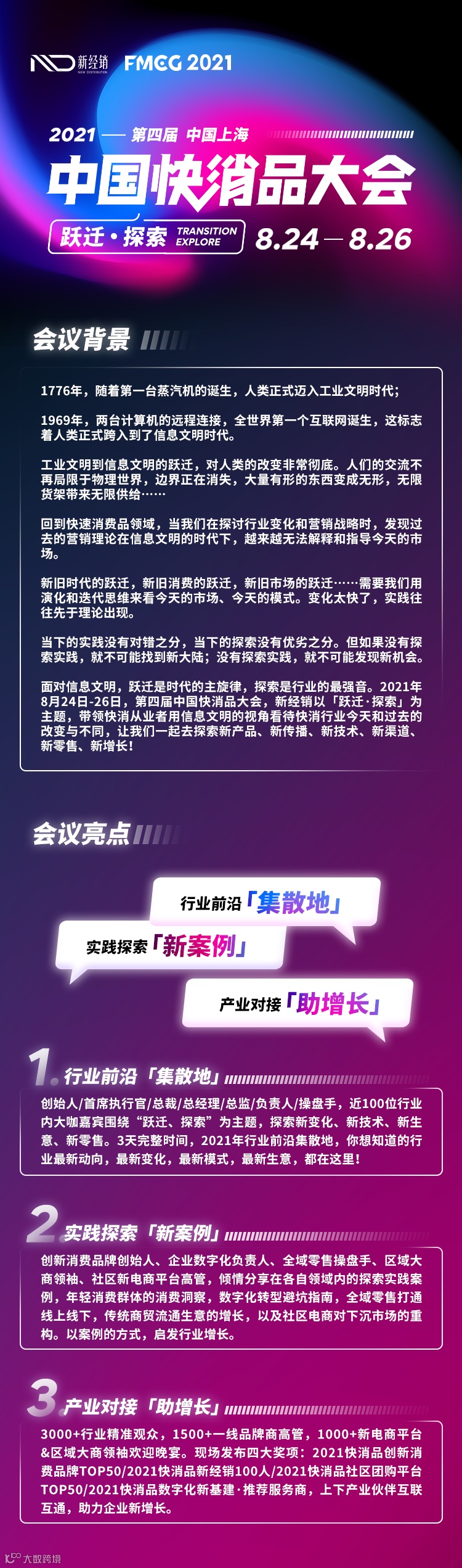 PS:8月24日-26日(第四届)中国快消品大会,将围绕着“跃迁·探索”为主题,聚焦「行业前沿集散地」+「实践探索新案例」+「产业对接新增长」为核心,为快消从业者带来一场关于行业跃迁的思想盛宴!