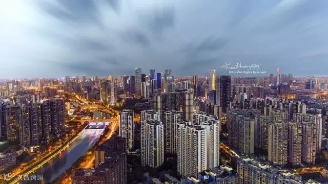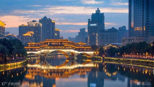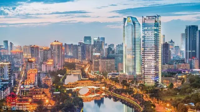 一副夜幕降临的成都经典图