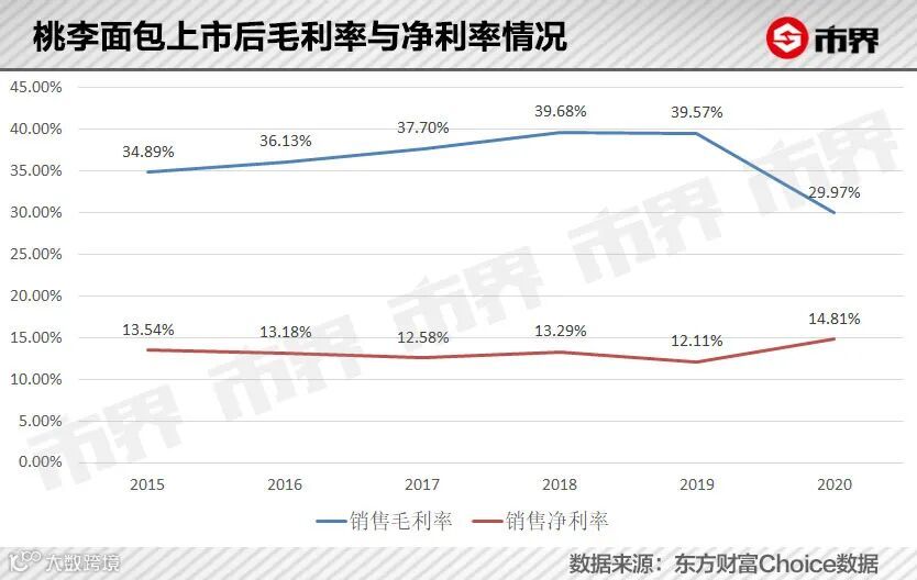 2020年,桃李面包的销售毛利率是上市以来的最低水平,但同时,净利率却是上市以来的最高水平。