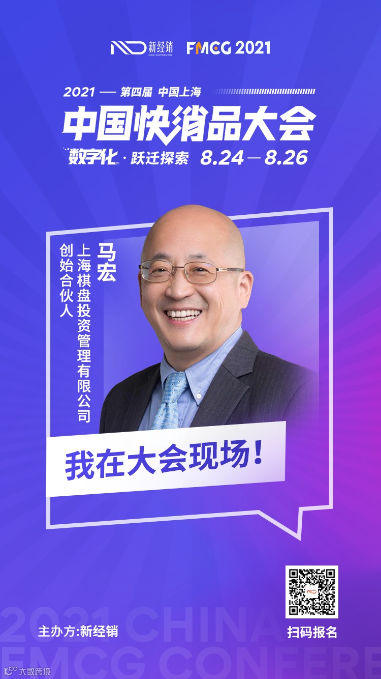 8月24日-8月26日,在即将举办的2021年第四届中国快消品大会上,新经销特意邀请到了上海棋盘投资管理有限公司创始合伙人马宏先生参会并进行分享,为我们带来一场思想盛宴!