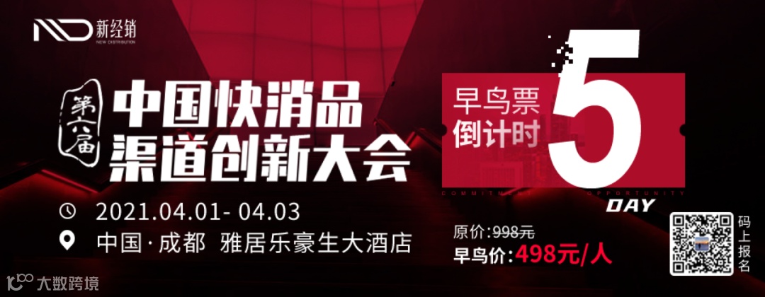 PS:2021年4月1日-3日,由「新经销」举办的2021年(第六届)中国快消品渠道创新大会暨首届中国快消品社区电商大会,将在成都盛大开启。围绕着“新渠道/新渗透;老渠道/新升级”为核心,120+大咖嘉宾,共赴2021上半年快消行业最大盛会!
