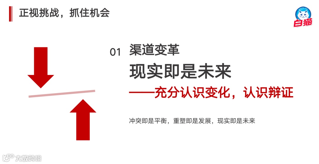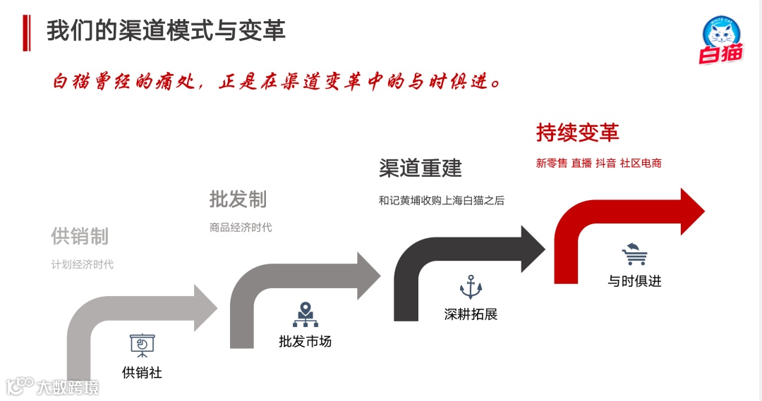 所以今天要讲的这个主题就是因为,我们曾经有过的痛处,就是在白猫的发展历史当中曾经有一个阶段,在渠道的变革当中没有跟上,所谓的没有与时俱进。