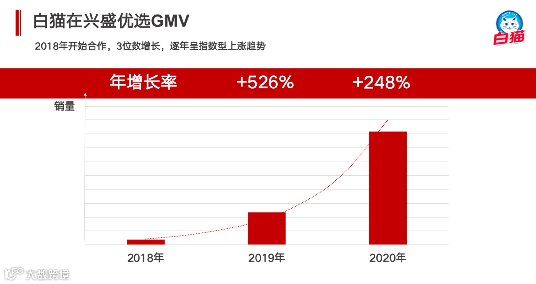 所以,在过去几年当中,因为兴盛优选是社区团购当中比较早开始启动的一个平台,白猫非常早跟兴盛优选就形成了一个很好的合作关系,在过去的三年里面,也有过不错的成长,这一块的趋势从一个极低的数字到现在为止在一个比较高的数字。除了兴盛优选之外,还跟其他社区团购的平台也不断有一些合作,我们也在不断地开拓一些新的合作。