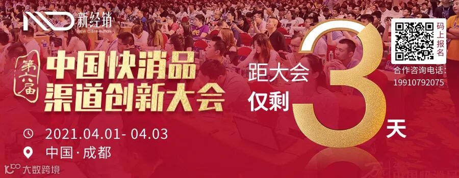 PS:2021年4月1日-3日,由「新经销」举办的2021年(第六届)中国快消品渠道创新大会暨首届中国快消品社区电商大会,将在成都盛大开启。围绕着“新渠道/新渗透;老渠道/新升级”为核心,100+大咖嘉宾,共赴2021上半年快消行业最大盛会!