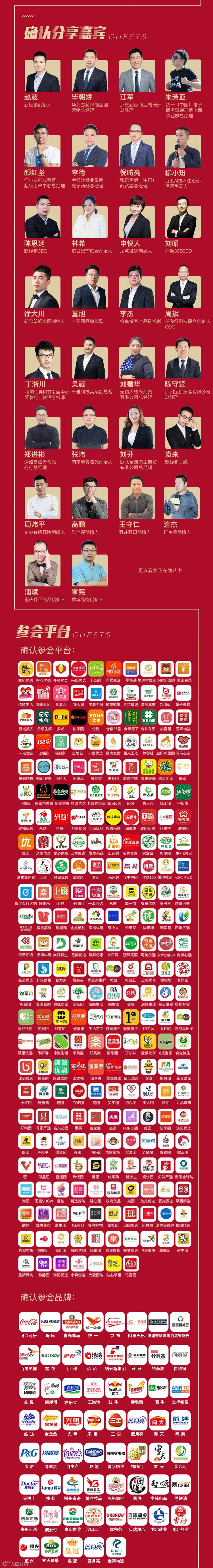 截止目前已确认的部分重磅嘉宾有:1. 华润雪花啤酒全国营销总经理毕朝矫先生;2. 京东到家商业增长部总经理江军先生;3. 统一中国电子商务流通群兼电商群总经理朱芳亚先生;